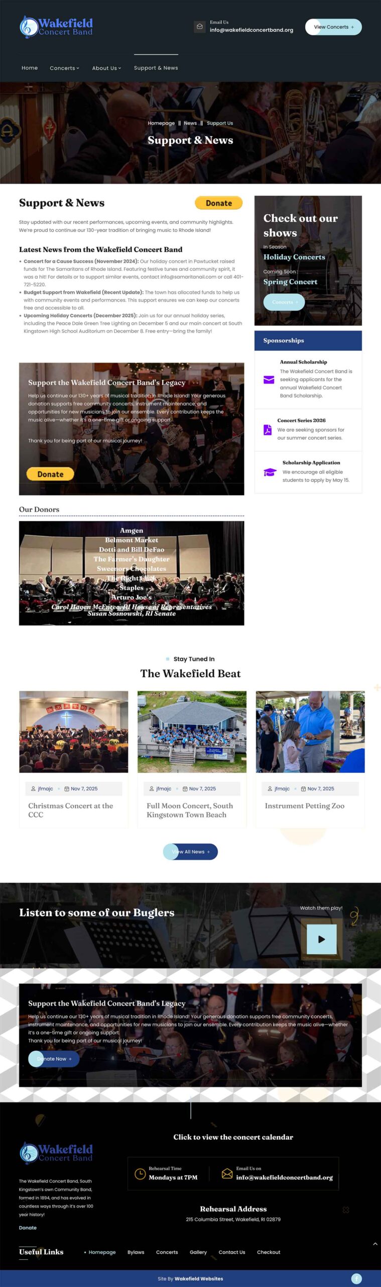The Wakefield Concert Band project is a great example of revitalizing a longstanding community non-profit with a modern, user-friendly website that supports their mission of free, accessible live music in Rhode Island.